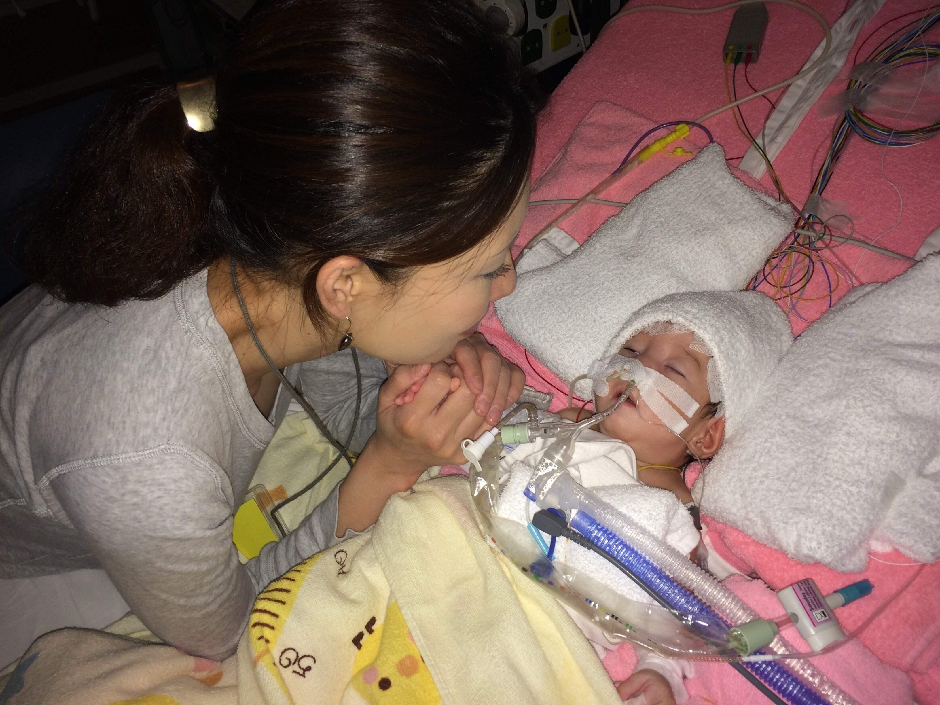 でもそれから入院中は毎日、弘一郎の状態の説明を受けました。新生児期に亡くなってしまう子も非常に多いことや、呼吸の障害の度合いが長いほどその後の発達にかかわる、という話を1日に何度も受けました」(まやさん)
