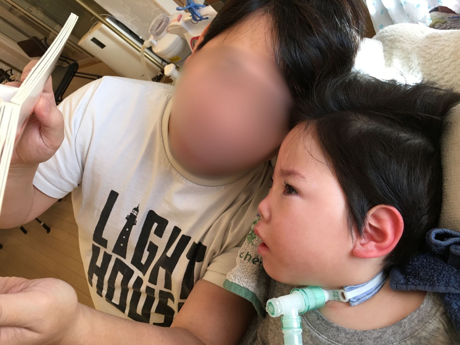 双子の兄たちは、気管切開や人工呼吸器はとても大事なもので、万が一取れてしまったらすぐお母さんを呼ばなくてはならないとか、どんなに弟がかわいくても機械には触れてはいけない、といった生活上の注意を学びました」(まやさん)