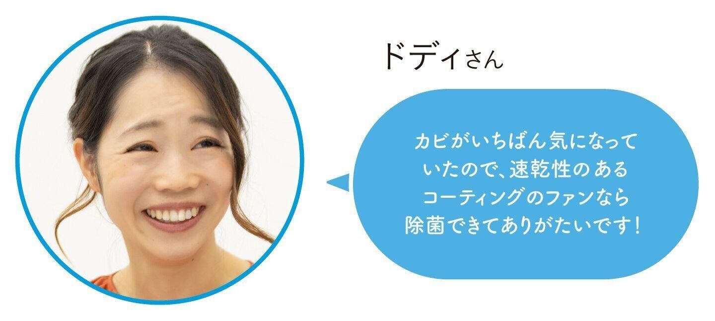 【ドディさん】カビがいちばん気になっていたので、速乾性のコーティングやプラズマクラスター機能でカビを除菌できるのはありがたいです!