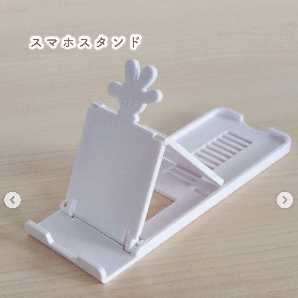 coco_a_poco_さんがセリアで購入したのは、ミッキーの手がデザインされたスマホスタンド。細かく角度を調整できる点や、安定感がある点が気に入っているようです。薄く折りたたむこともできるとのことで、持ち運びにも便利そうですね◎