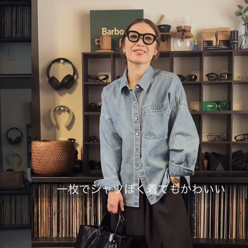 NANAさんは「デニムリラックスシャツジャケット」を購入。デニム素材がカジュアル寄りなので、テーパードパンツやタイトスカート、白のインナーで上品さを出すと、一気に大人っぽく仕上がります♪ デニムのブルーはニュアンスカラーとも相性が良く、ベージュやブラウン、グレーと合わせると洗練されたコーデに!そでをくしゅっとまくって手首を出すと、軽やかさと抜け感が出るのでおすすめです。