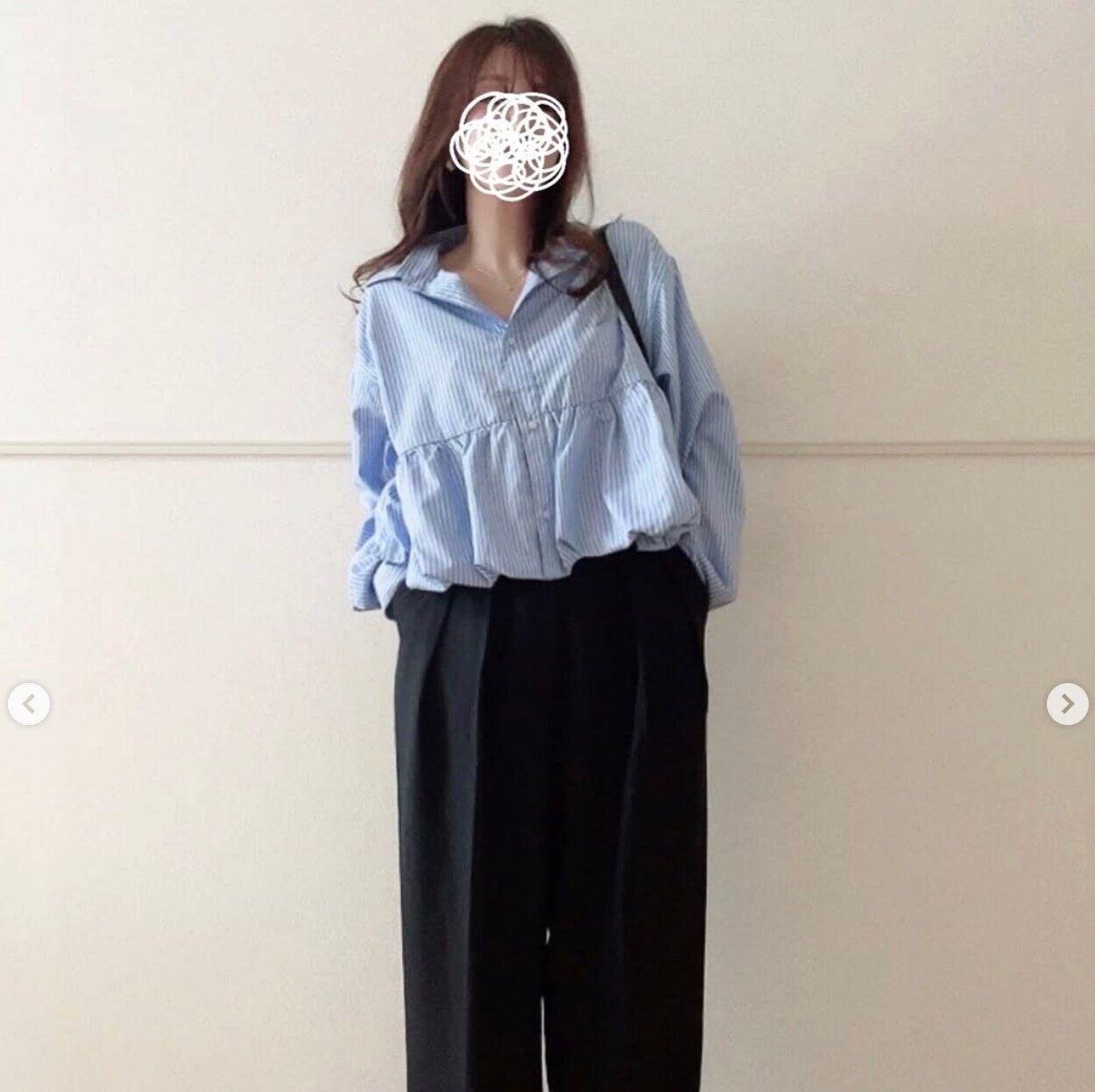 こちらは_bambi.cocoさんが購入した、ストライプ柄シャツ。すそがバルーンシルエットになっており、大人可愛いデザインですよね!シワにもなりにくい素材のようで、パンツと合わせたキレイめコーデはもちろん、ロングスカートやビスチェを合わせたスタイルもおすすめなんだとか♪
