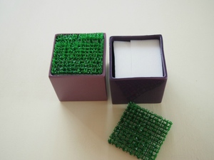 器に合わせてスポンジを敷き詰め、芝生をその上にのせる。