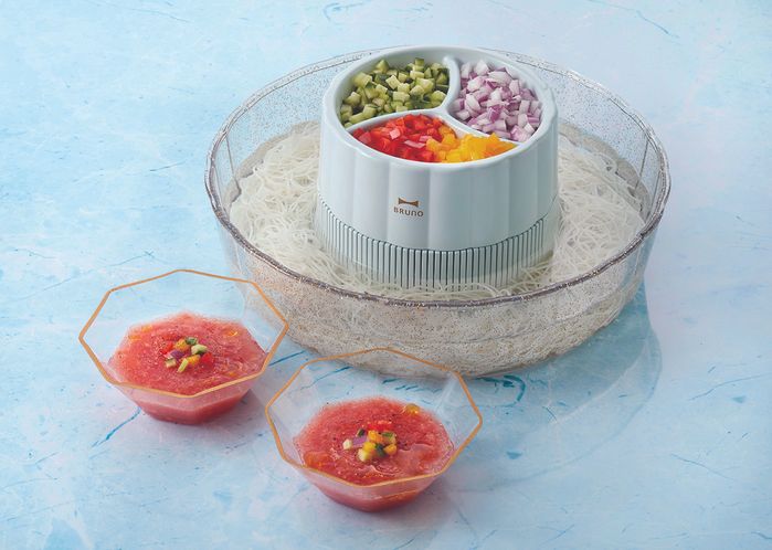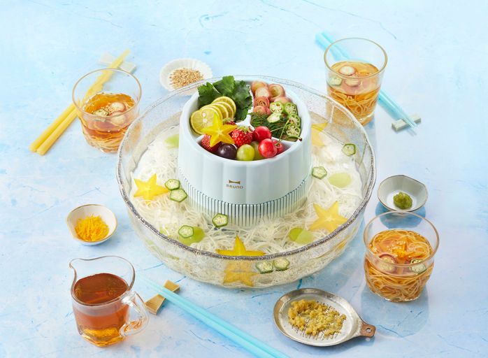 そこで、おすすめなのがおしゃれホットプレートでおなじみの「BRUNO(ブルーノ)」から登場した「流しそうめん」。トッピングしやすい構造になっていて、いろんなアレンジレシピも楽しめて、そうめん事情がいっそう盛り上がること間違いなしです!