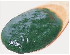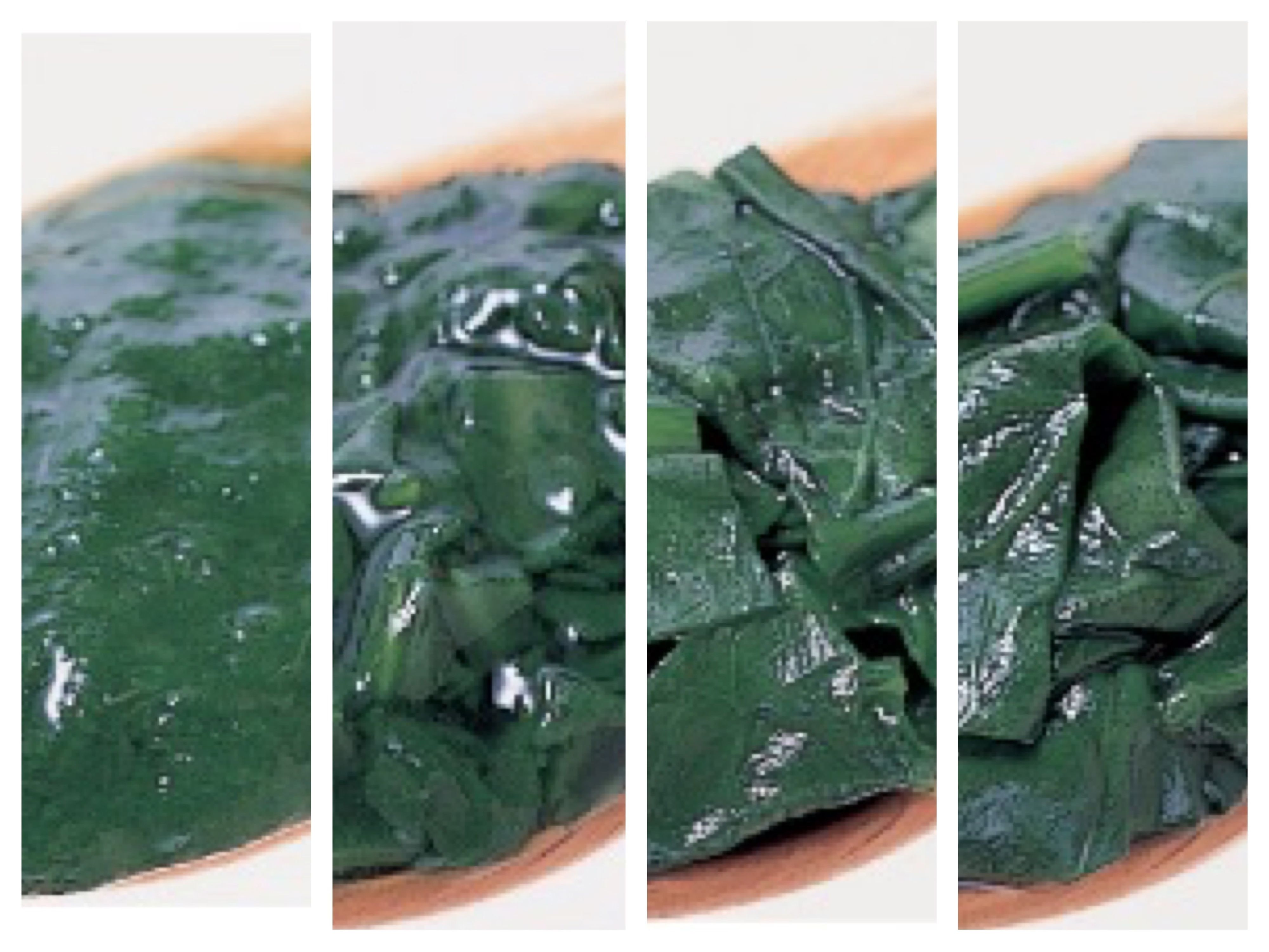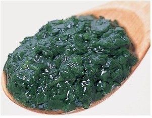 葉先のみをやわらかくゆで、ていねいにすりつぶし、湯でなめらかにのばします。水溶き片栗粉でとろみをつけても。