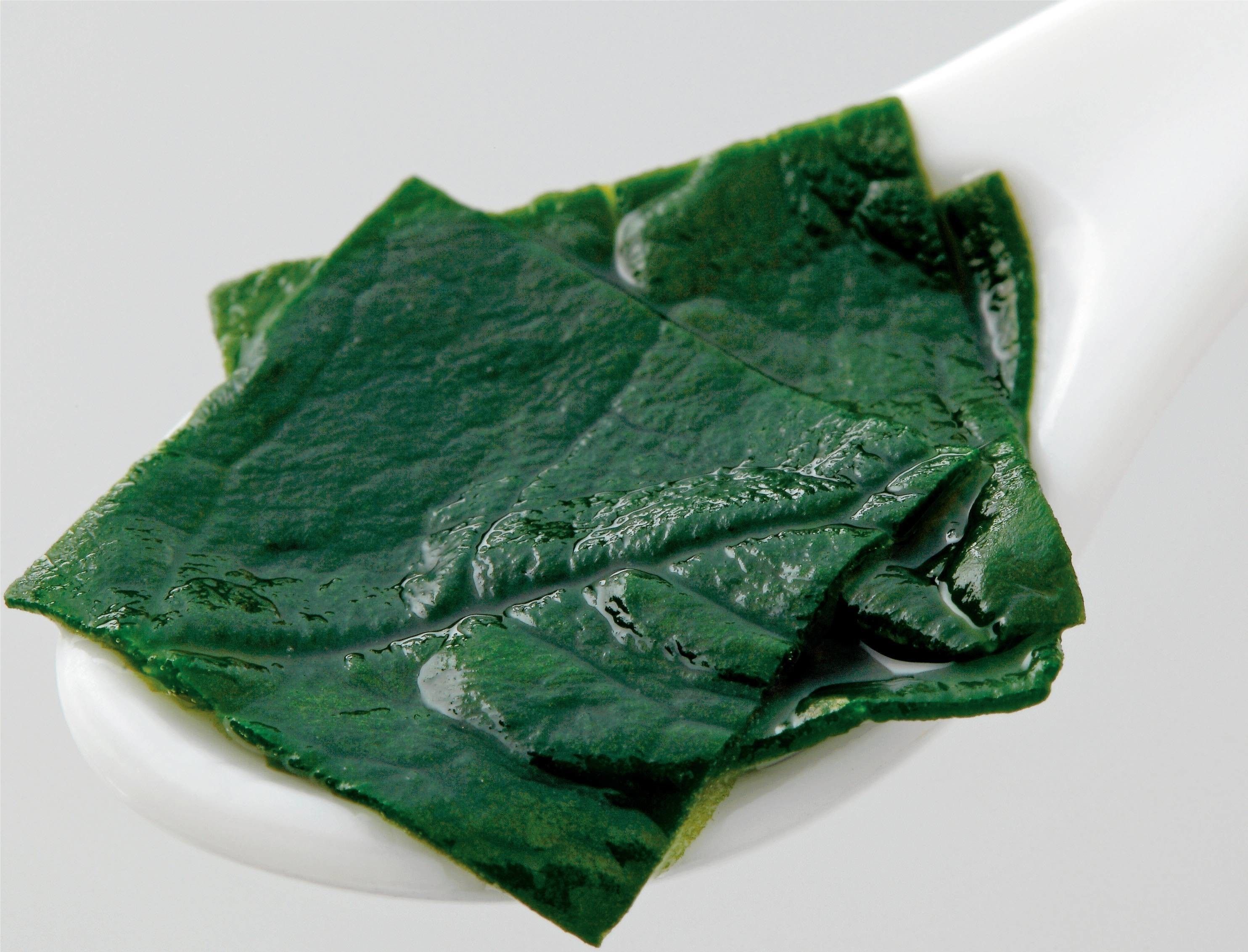 芯とすじは取り除き、やわらかい葉先のみを使って。