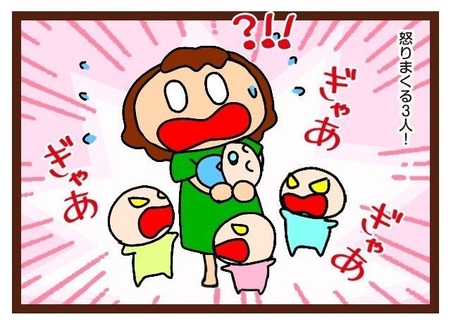 私が赤ちゃんを抱っこした瞬間怒り狂い泣き出す3人!