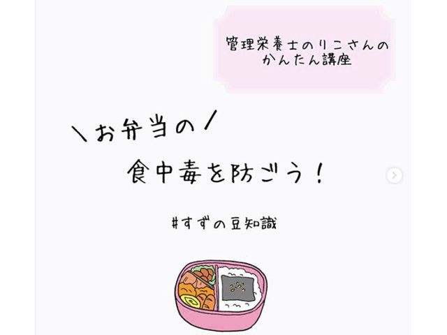 この時期のお弁当で怖いのは、食中毒。Instagramで暮らしに役立つ情報を発信しているすずさん(@suzu1985)が、これからの時期のお弁当で気をつけるべきポイントを管理栄養士の方へ取材。それらをまとめたInstagram投稿の一部をご紹介します!