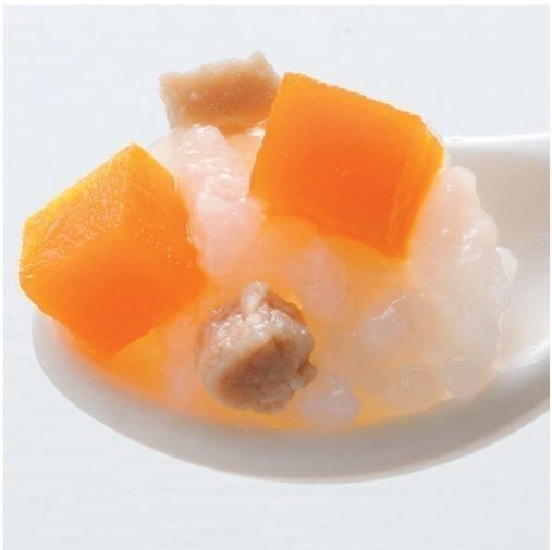 歯ぐきでかめて、スプーンで切れるぐらいのかたさに調理します。食材はだいたい、5㎜~1㎝角が目安。根菜などは手づかみ食べしやすいスティック状にしても。