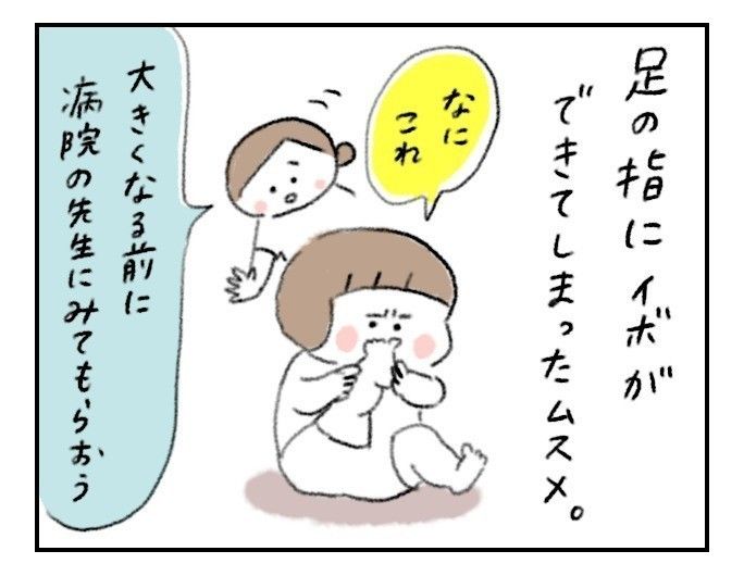 ちなみにこの日は「このイボは、いやちゃんの足を痛くする悪者なんだ。病院の先生にやっつけてもらおう!」と、病院に行く必要性を説明をしながら連れて行き、「痛いことするの?」と聞かれたら「先生が何をするのかはママにはわからないけど、もっと痛くならないためにはしないといけないことがあるんだよ。」と伝えました。ウソは言えないし、どうなるのかも想像つかない。どう答えたら正解だったのかはわかりませんが、ムスメはほんの少しだけ落ち着いた様子でした。