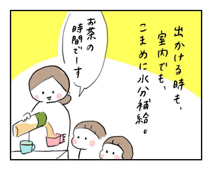 脱水症状になりやすい子どもたちへの水分補給は意識しているのに自分は飲んでなかったり。出先で、子どもを連れてのトイレが面倒なあまり、自分は水分補給してなかったり。。あると思うのですが、パパもママも子どもと一緒に水分補給できるといいですよね!