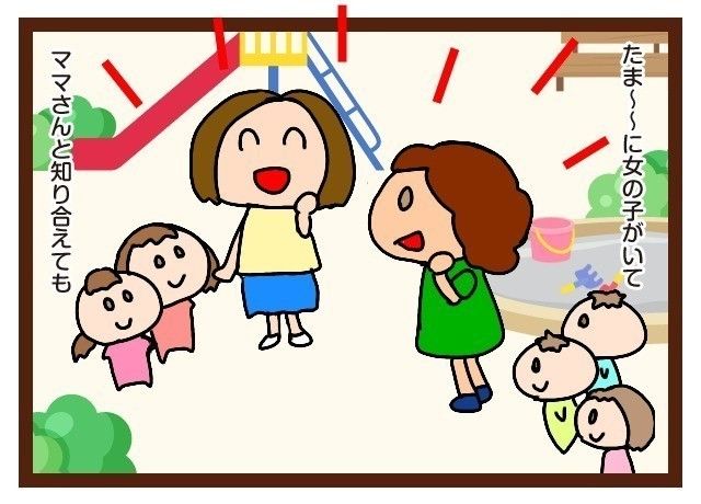 エーにも女友達を…と思って公園で女の子がいたらママさんに話しかけたりするのですが「普段は家遊びしてるよ」とのことで、お外ではめったに会えません…。