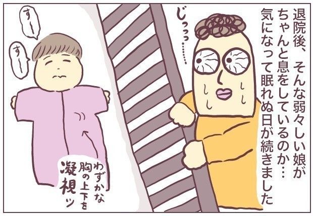 娘が生まれた時はその小ささ、弱々しさに驚き…あまりの寝息の小ささに、「ちゃんと息してるの?」と凝視ッ!!それでも不安ッ!!と眠れぬ日々。