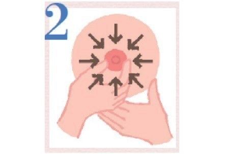 乳首を軽くつまんで中心に向かってマッサージ。少しずつずらしながら、360度もみほぐしましょう。