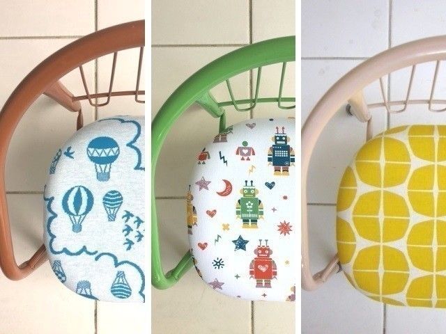座面の柄は、子どもらしいポップな柄や北欧風、無地やボーダーなど種類が豊富。フレームは全3色から選べます。好みの柄とフレームを組み合わせて、セミオーダーができちゃいます♪