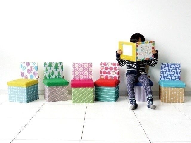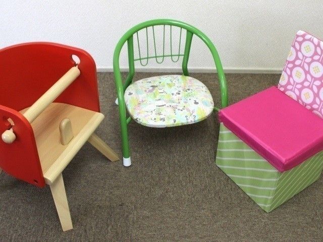 色や模様がカラフルでかわいいこのチェアは、収納としても使えるすぐれもの。使わないときはコンパクトにして収納できるなど、ママにとってうれしい機能がいっぱいです♪