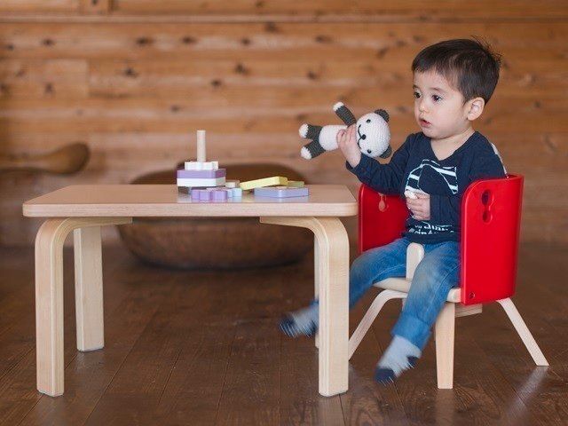 オシャレなだけでなく、木製なのに子どもがずっと座っていられる計算されたデザイン。また、木のぬくもりを感じるナチュラル以外に、発色のいいカラーバリエーションも魅力。きょうだいで色分けして使ってもかわいいですね♪