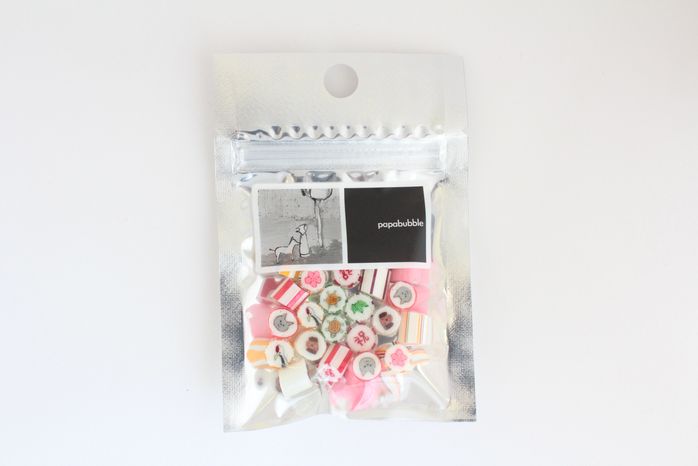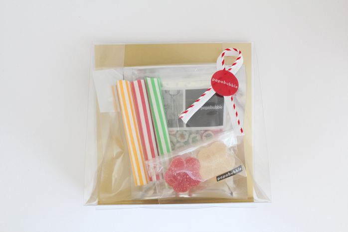 ミックスキャンディ BAGと、ミニ千歳飴3本(1本約10cm)、バブレッツ(グミ) 2個のセットで1,200円。