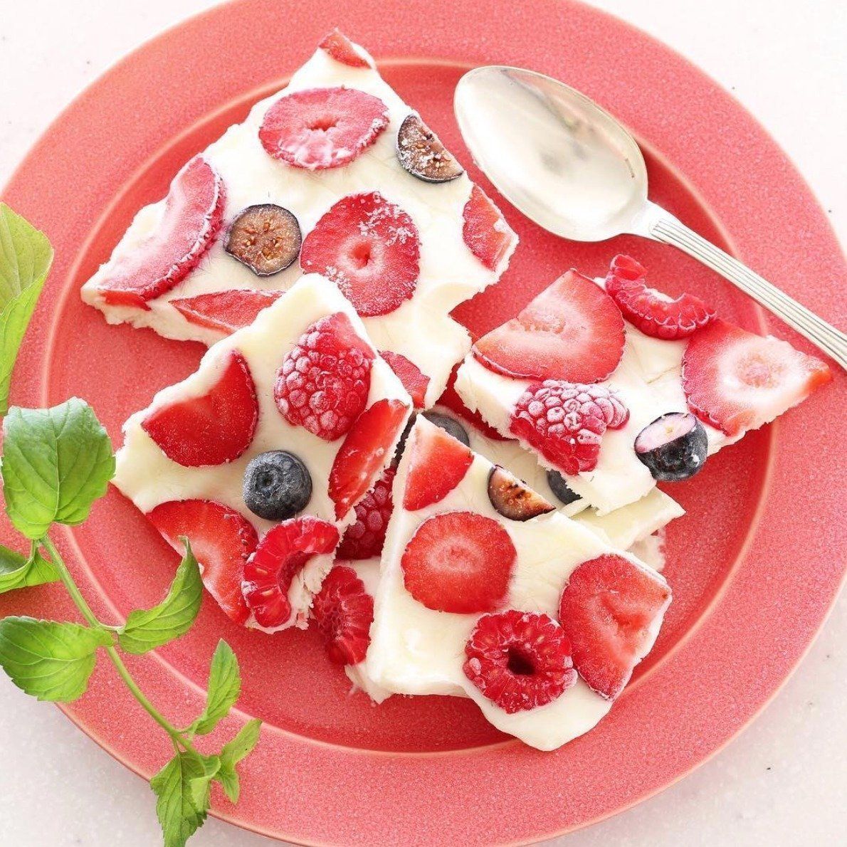 とても絵になる、ベリーカラーのヨーグルトバーク。5mmと薄めの仕上がりでランダムにカットされた姿も美しいですね。フルーツとヨーグルトは女性の大好きな組み合わせだから、ホムパなどのおもてなしにもうってつけですね。ぜひ試してみて!