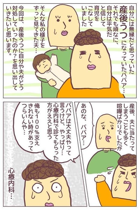 また、漫画には描き切れませんでしたが、産後のうつ…私だけでなく、夫もとても辛かっただろうと思います。