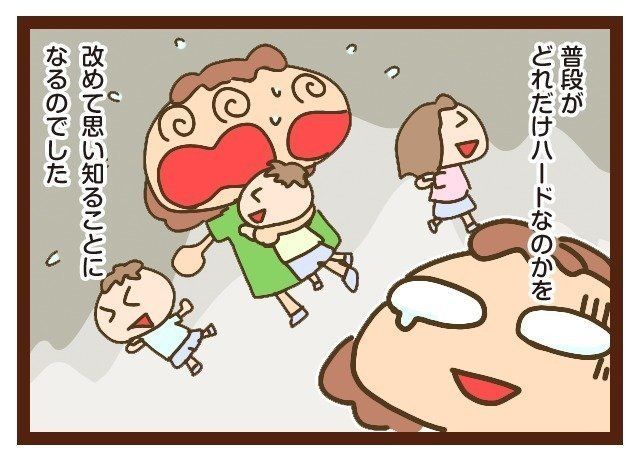普段だったら2人は手をつないでも、あとの1人は必ず目を離してはいけないのと何かあったらすぐに追いかけないといけない緊張感が凄かったのですよね…。
