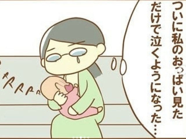 赤ちゃん訪問にやってきた助産師さんに相談したところ、「赤ちゃんはもう哺乳瓶をおっぱいだと認識してると思うよ」と返答が…。確かに、おっぱい=哺乳瓶と認識しているなら、おっぱいを見ただけで泣いてしまうという現象も寂しくなりますが、納得できます。
