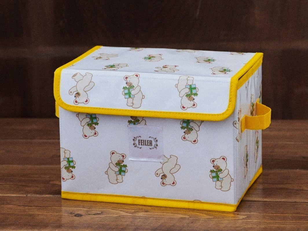 赤ちゃんのおむつ替えなどのお世話は、昼間はリビングで、お風呂上がりには脱衣所で、夜寝るときには寝室でと家のいろんなところでします。そんなときに、使うグッズをひとまとめにしておけば移動もラクなボックスを作りました。フェイラーとのコラボのデザインにも注目です。
