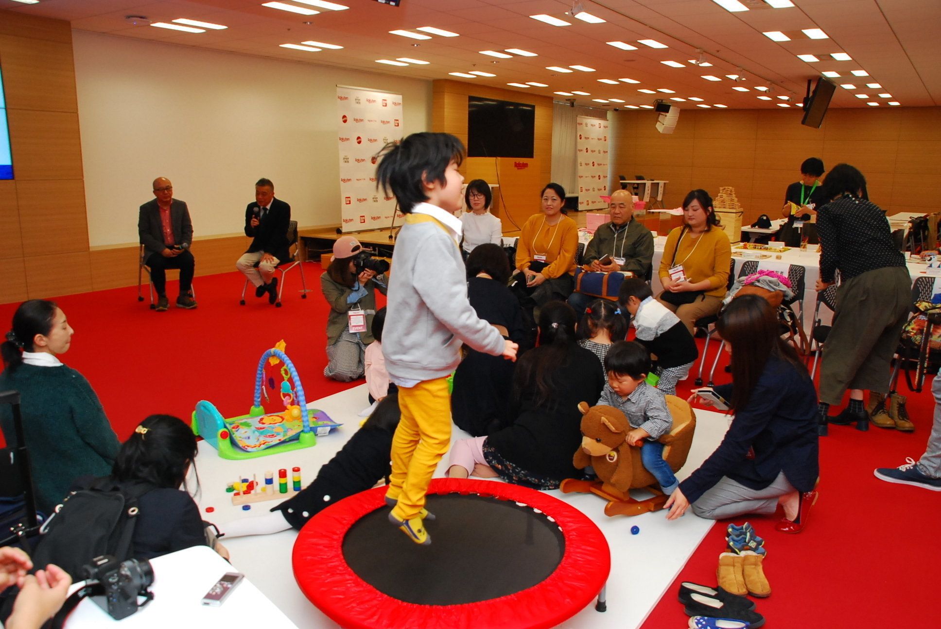 表彰式後は、おもちゃで遊ぶ子どもたちを囲みながら、審査委員二人によるトークショーが行われました。クリスマスを前にママ・パパ、祖父母にも参考になりそうなアドバイスがあったので、プレゼントに悩み中という方は参考にしてみてください。
