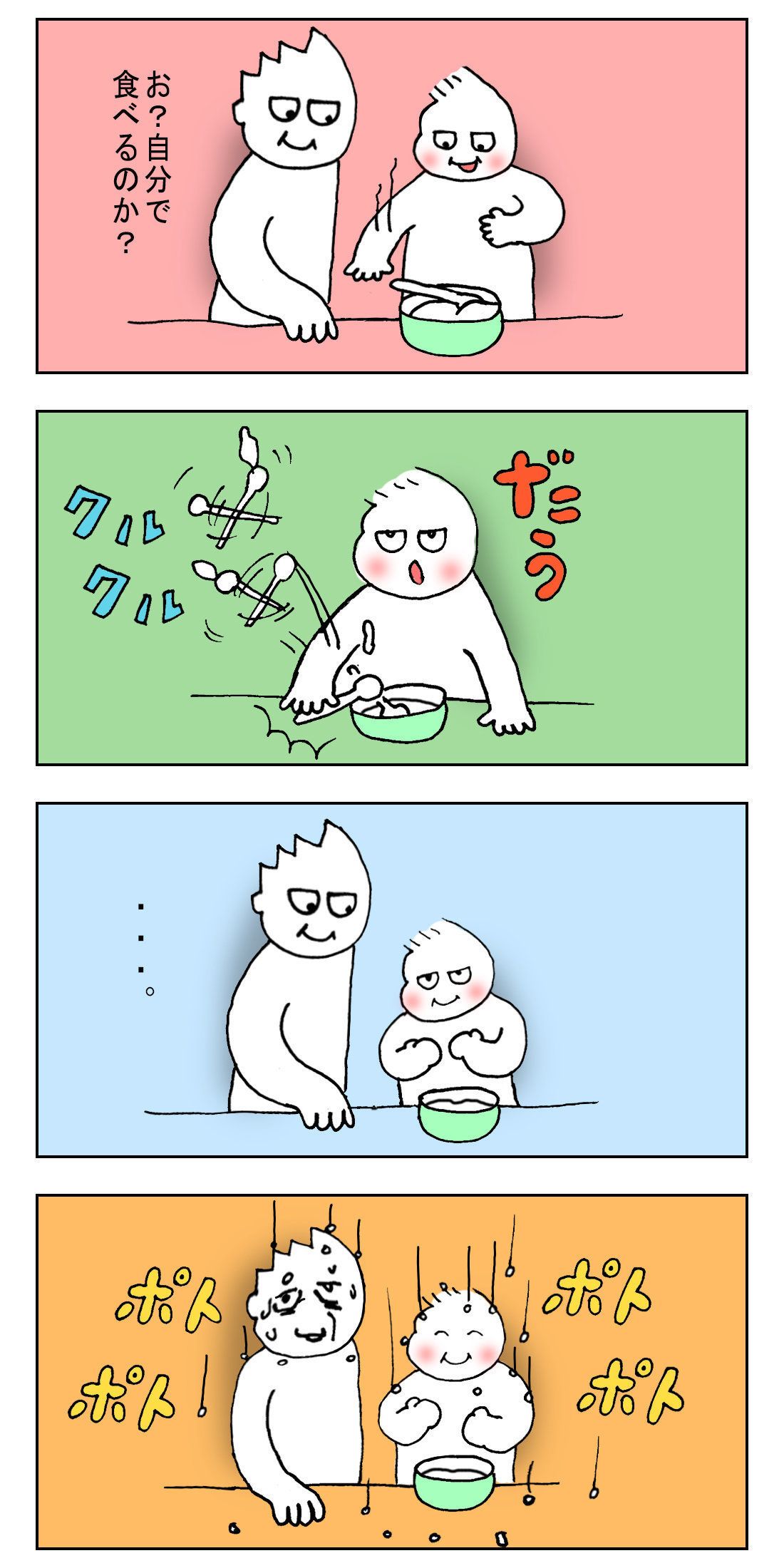 [父親目線!育児漫画!オムツ王#44]離乳食の雨