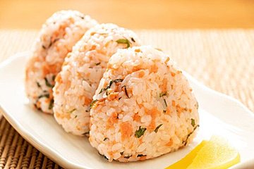 (2)(1)と軟飯子ども用茶碗1杯分、白ごま少々を混ぜ合わせ、一口大の俵形に形作る。こまかくちぎった焼きのり少々をはりつける。