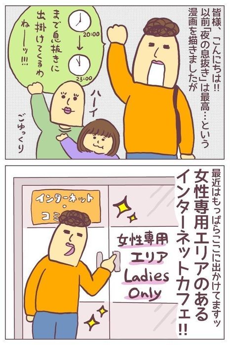 もちろん家でも、子どもが寝た後などに漫画読みながらゴロゴロできないこともないのですが…私の場合は、ヘッドホンで音楽を聴いたり、ジュースを飲んだりしながら「子どもが起きるかも?」などと気にすることなくのんびりしたいッ!!という思いからネットカフェに足を運んでいます。