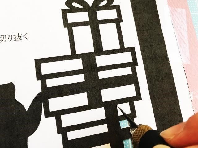 ・「猫とプレゼント土台」を点線に沿って切り取る