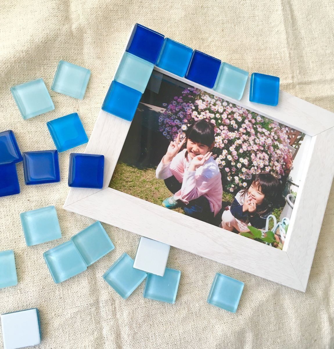それなら市販のフレームをタイルでアレンジしてオリジナルのフォトフレームにしてみてはいかがでしょう。百円ショップでフォトフレームとお子さまが好きな色のモザイクタイルを購入し、木工用ボンドでお好きな箇所に貼っていきます。お子さまと相談しながら一緒に貼り付けて世界で1つのフォトフレームを作ってみましょう。子どもはママと一緒に作ることが大好き。ママと作ったフォトフレームで自分の写真が飾られていることは、子どもにとっては自分が大切にされているという気持ちが育ち、自己肯定感にもつながります。