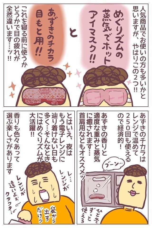 ご紹介しました2つのアイマスク、どちらもそれぞれの良さがあってお気に入りです。他に繰り返し使える電熱式のものなどもありますし、1日の終わりに目の疲れを癒してから眠りたい…という方は色々と試してみるのもいいかしれません!