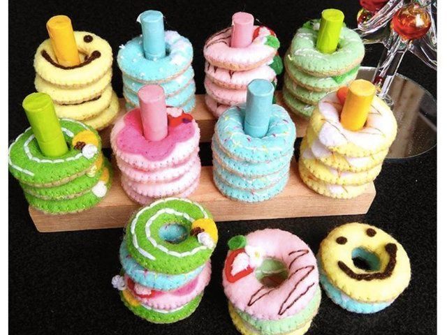 mioさん(@c_mio_r)は、ディッシュスタンドの棒に合わせたドーナツ型のおもちゃをフェルトで作っています。ディッシュスタンドの棒に刺して積み重ねたり、色分けしたり…いろんな遊びが可能。ディッシュスタンドがまさかの知育玩具になるなんて、驚きです!