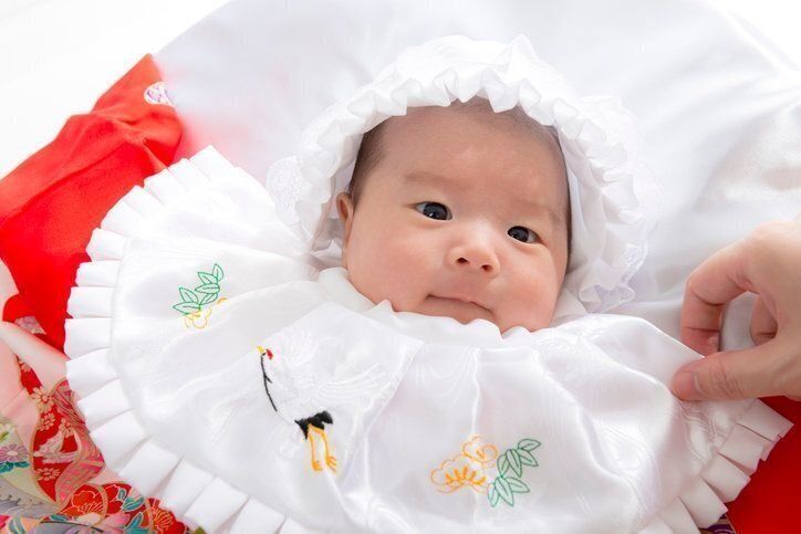 いちばん大切なのは、赤ちゃんが元気に生きていくことを祈願すること。赤ちゃんに祝い着を着せるなら、付き添う両親、祖父母はスーツ、着物などの正装が一般的です。