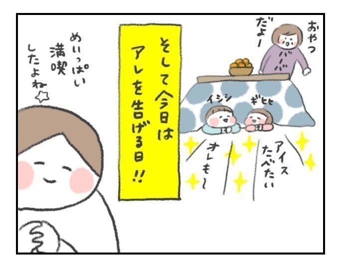 4コマ目は想像して描いてますが、前もって「あと◯日ねんねしたら幼稚園だよ」と子どもたちに伝えていたとしても絶対こうなる。去年もそうだったし、パパも私もそうだったから気持ちは痛いほどわかるよ~!!笑