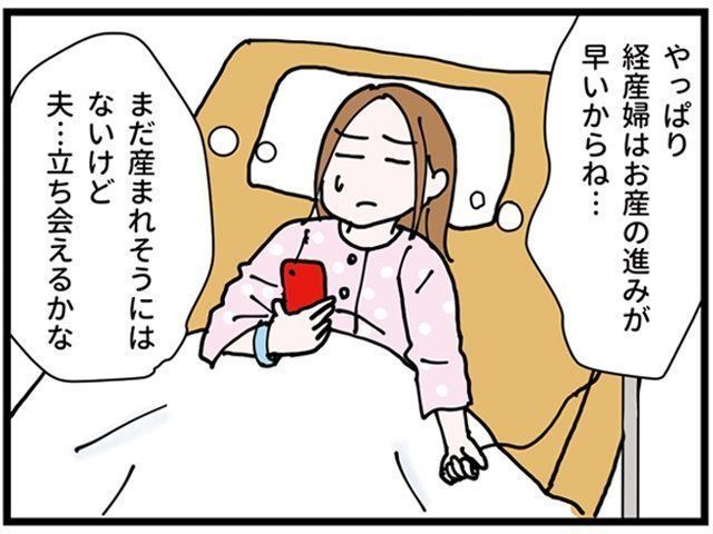一人めのときは破水したのかわからない不安の中で早く病院に行ってしまい、家に返されたり、また本陣痛が始まってもなかなか間隔が短くならず、入院まで時間がかかったり…ということがあったので、今回もまぁまだ産まれないだろうとたかをくくって行った病院。即入院に驚きつつ、産むならば夫とともに出産を頑張りたい…!夫にも生まれる子どもを見せたい…!という一心で陣痛との戦いが始まりました