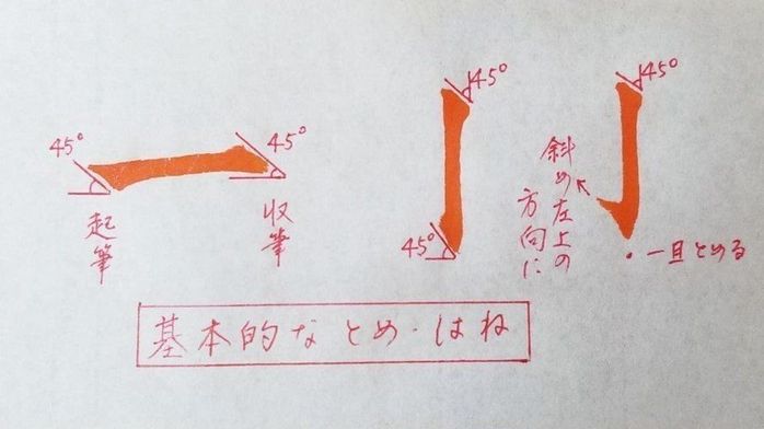 筆ペンに限らず、筆で楷書を書く時も同じですが、起筆・収筆がとても大事です!