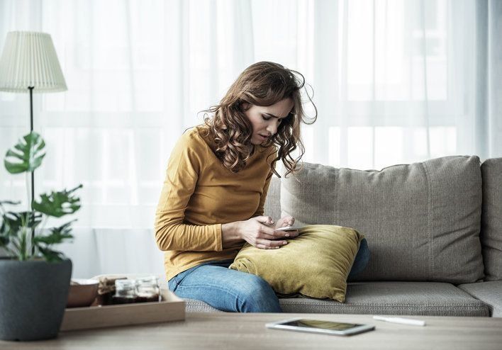 うつむき加減姿勢でいることで頬や顎のラインがたるむ「スマホ顔」になってしまうことも…。一気に老け顔になってしまうかもしれません。