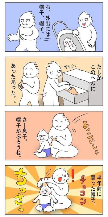 [父親目線!育児漫画!オムツ王#51]ぼうし!