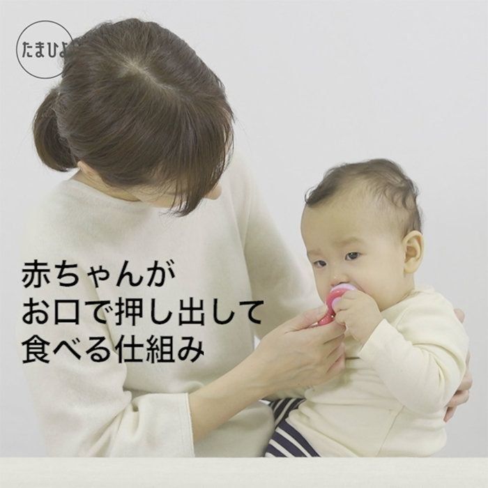 離乳食フィーダーは、赤ちゃんがお口で押し出して食べる仕組みの、新しい育児グッズ。