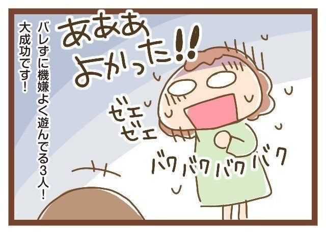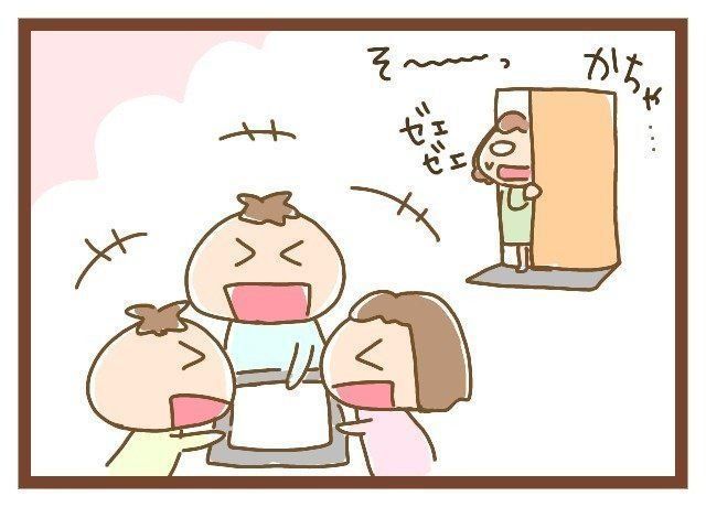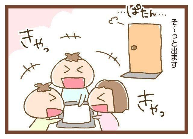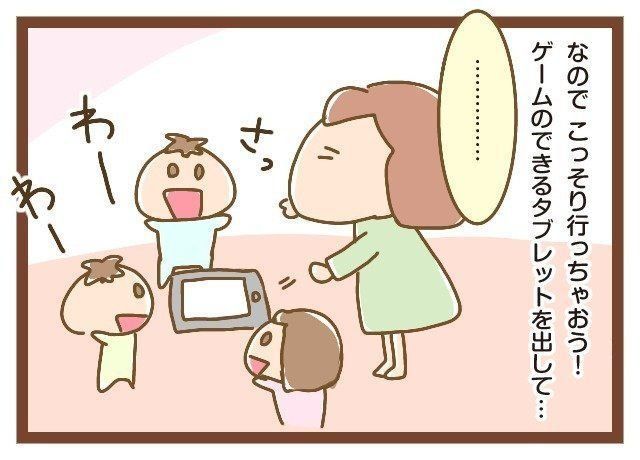 この時期、普段あまりタブレットは与えてなかったのでタブレットを出した瞬間三つ子は大喜びで飛びつきます。危険なものがないようお部屋の安全を確認し、私はそ~っと、別の部屋に行ってるだけだよ~~~という風に(笑)、音を立てずにこっそり外に出ます。