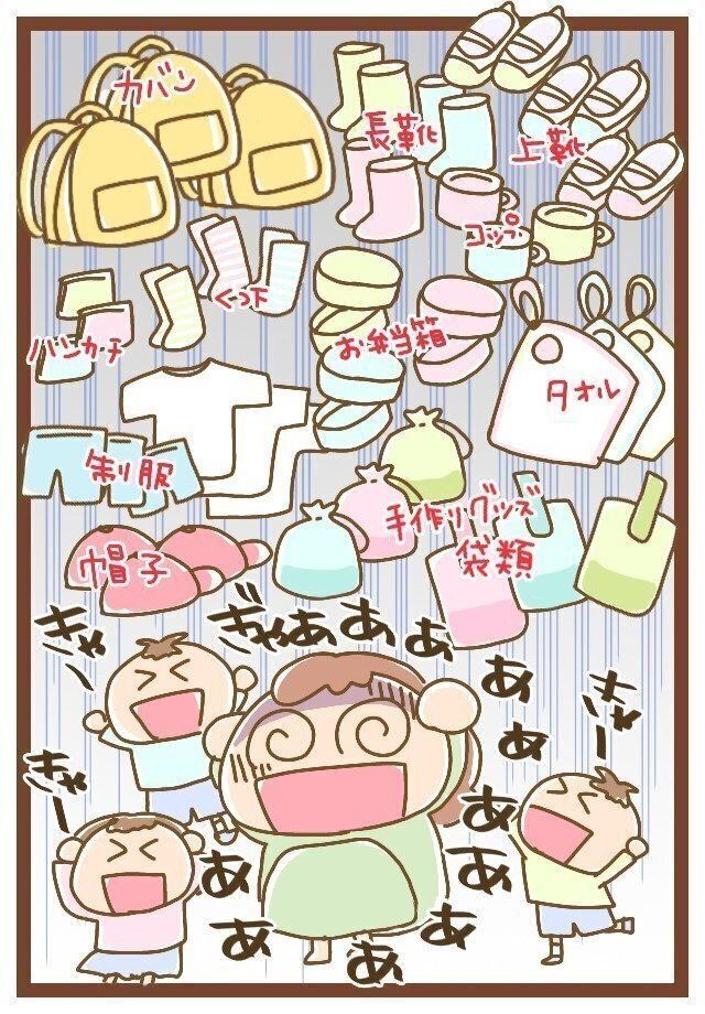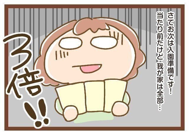 今回は我が家の入園準備のお話です。何もかも3倍なのです…。