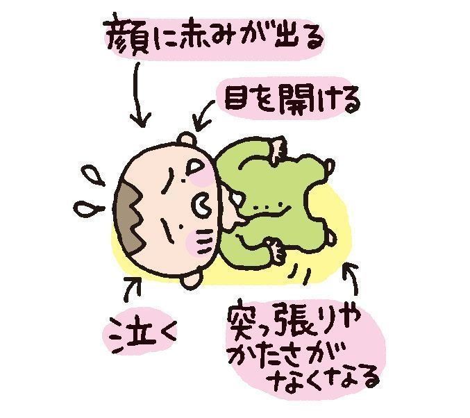顔に赤みが出る、手や足の突っ張りやかたさがなくなる、目を開ける、泣くなど、いずれかの様子が見られたら意識は戻ってきています。