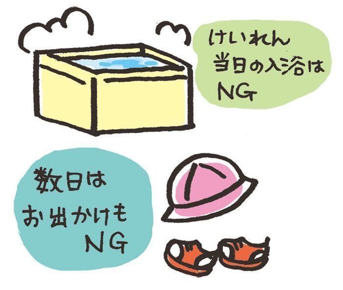 けいれん後、すっかり元気になっても、その日の入浴は控えましょう。また数日は、遠出のお出かけなど負担のかかる行動はやめておき、無理をしないようにしましょう。