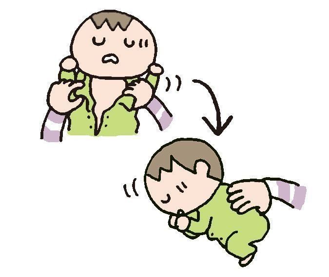 吐いたものが気管に詰まらないように、平らな場所に寝かせ、顔を横向きにします。呼吸しやすいよう、衣類やおむつは緩めます。