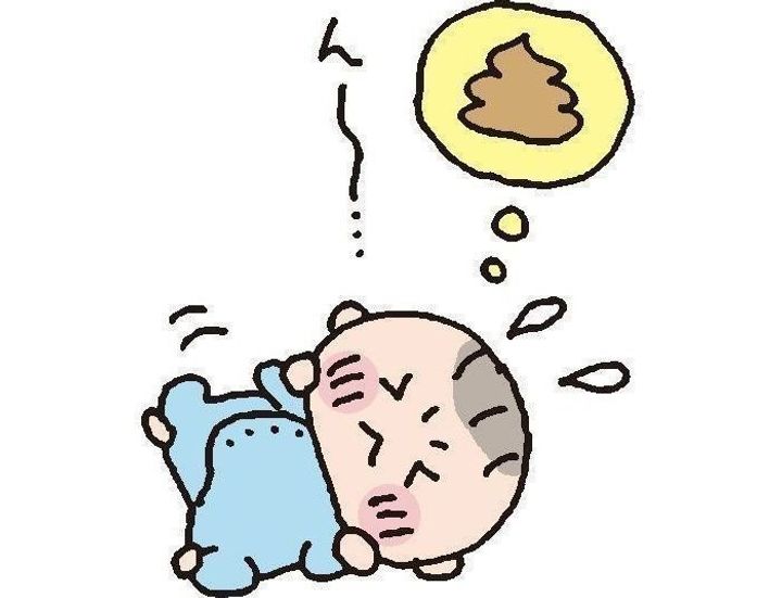 おっぱい、ミルクや水分の不足、離乳食や食事の食物繊維不足などで便がかたくて出にくい場合(便秘)と、ガス腹(おなかの中に空気がたまった状態)になって踏ん張る力が弱くて出にくい場合があります。ただ、うんちの回数やかたさは成長とともに変化し、個人差もあります。