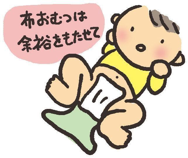 布おむつのときは赤ちゃんの股だけにおむつをあて、股ぐりには余裕を持たせます。布おむつを厚くあてる必要はありません。紙おむつは普通につけます。