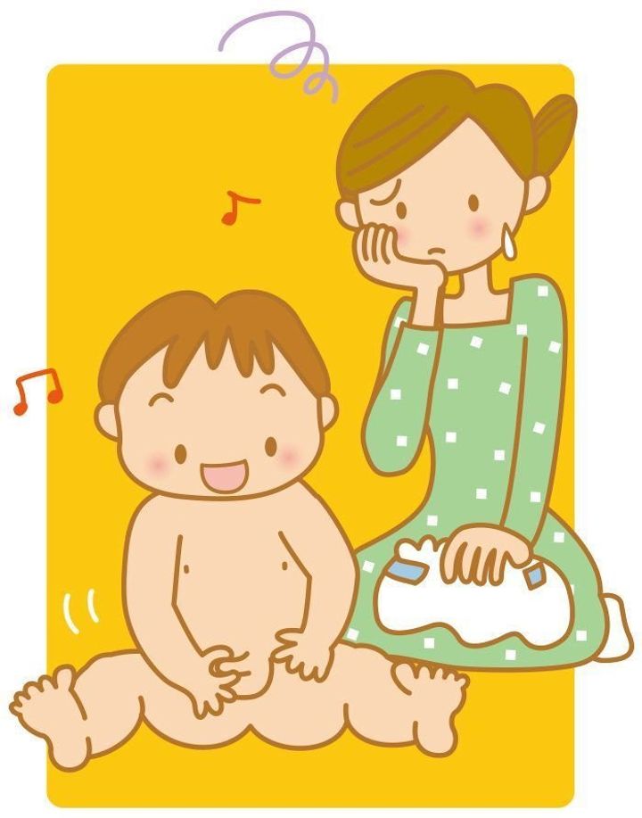 おしっこは、血液をろ過した液体で無菌性のものです。1日1回、おふろで洗っていれば、おしっこのおむつ替えで2~3回ふかないことがあっても大丈夫です。しかし、湿った状態が続くと、おしっこに害はなくても肌トラブルになることもあります。できる範囲でふいてあげましょう。